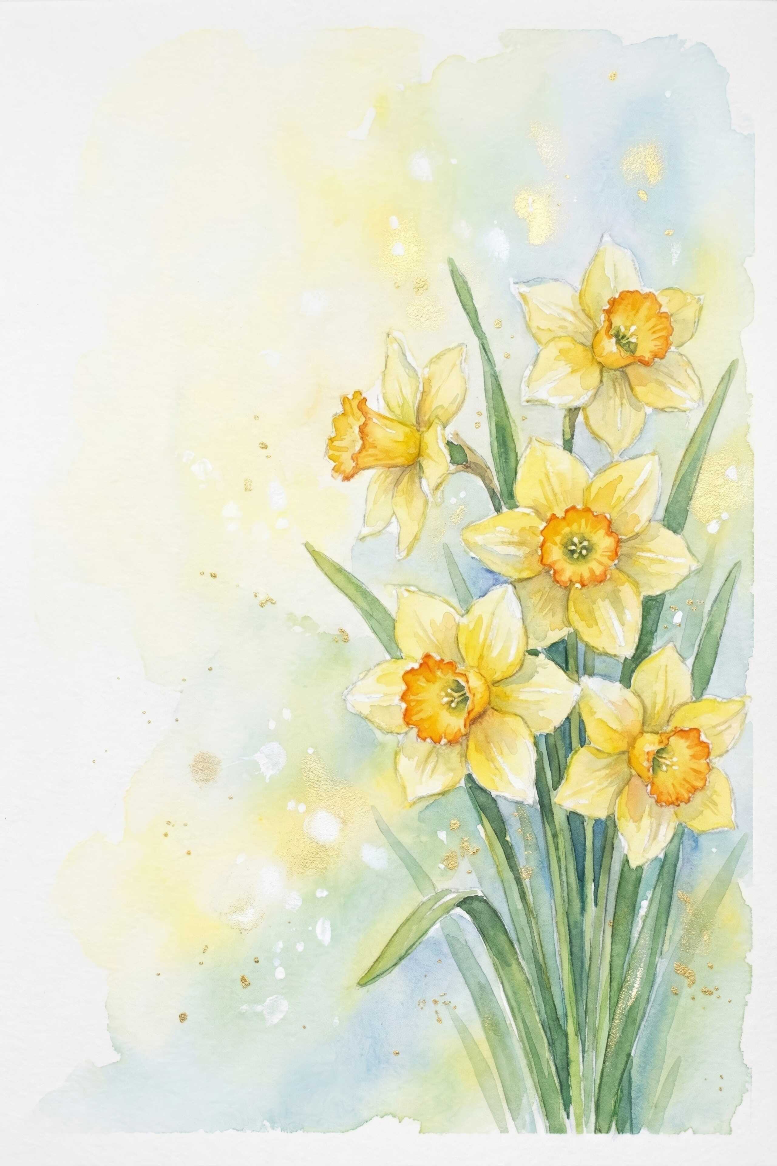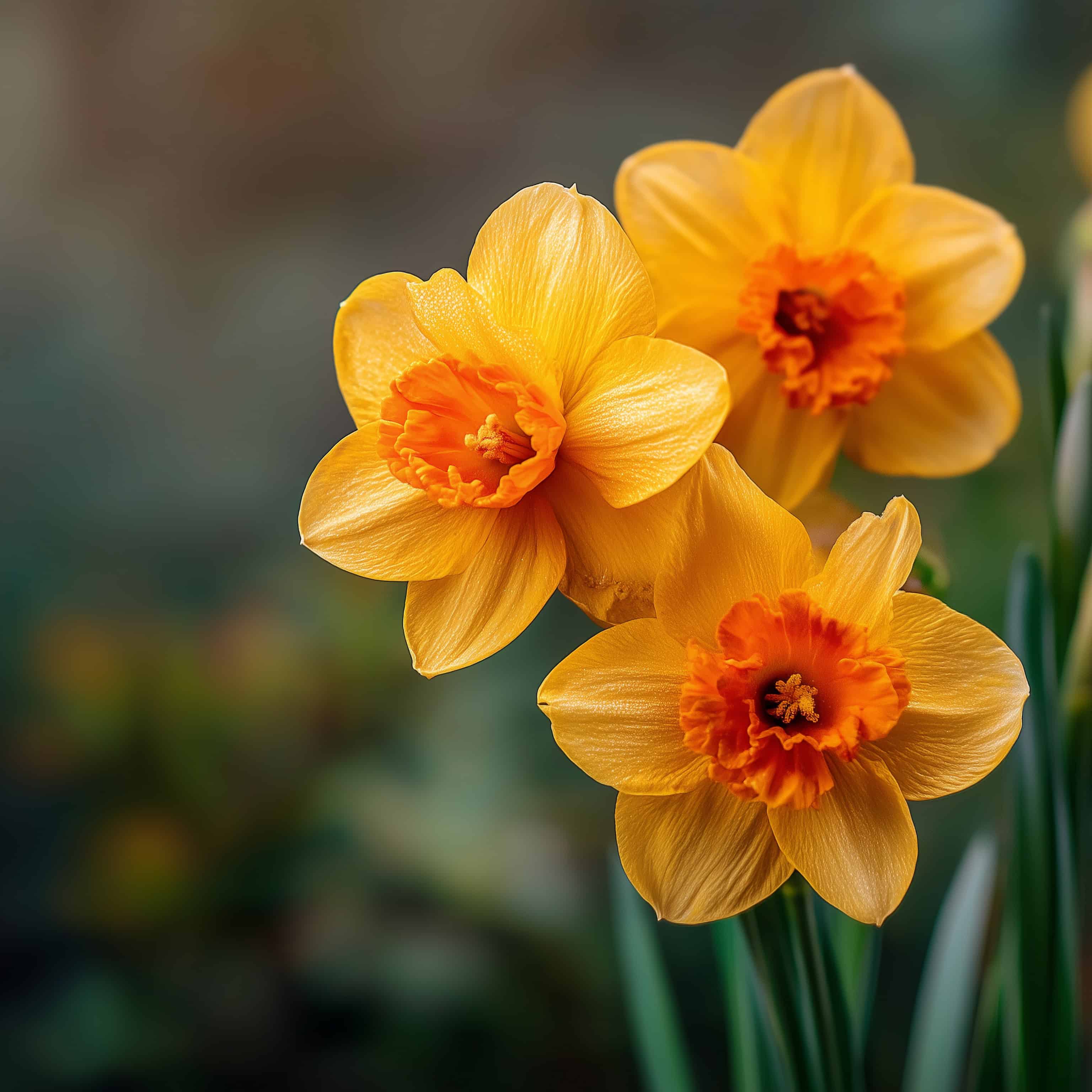 Warm and vibrant, orange daffodils represent enthusiasm, energy, and warmth, gently sparking creativity and joyful excitement.